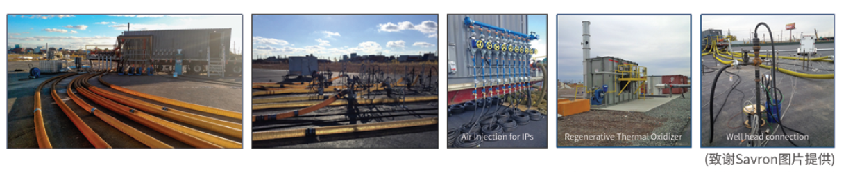 STAR was applied at the site usingthree independent treatment systems operating ‘cells’ consisting of multipleignition points (IPs), vapor extraction wells, and interstitial thermocouples. IPswere installed within impacted zones and connected to an air supply to supportthe combustion reaction, while removable in-well heaters were deployed as theignition source. Vapor extraction wells were installed within the cell tocapture vapors for treatment using conventional aboveground means (i.e.,thermal oxidizer). Interstitial thermocouples were installed to monitortemperatures in the subsurface during operations. Cell cycle times were short(days) and following treatment the equipment was removed and reused in anothertreatment area at the site.