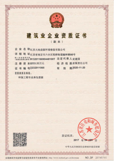 4月26日,公司環(huán)保工程專業(yè)承包資質(zhì)由二級升為一級,這是公司全體同仁共同努力的成果,是對公司業(yè)績、發(fā)展的肯定,對增強公司實力、品牌影響力有重大意義,有利于擴大公司在行業(yè)內(nèi)的知名度,提高行業(yè)競爭力。