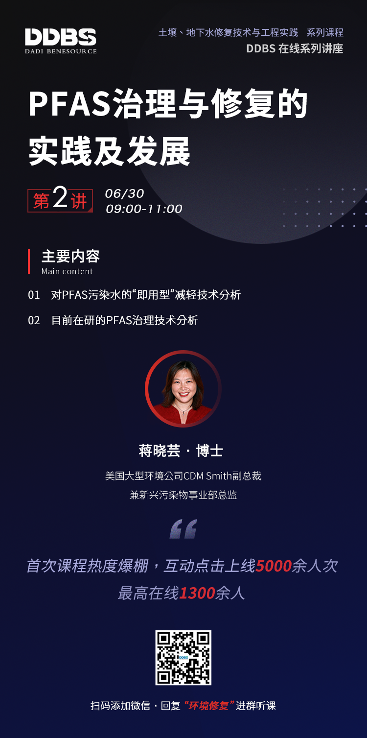 DDBS在線系列講座第二講《PFAS治理與修復的實踐及發展》即將開啟