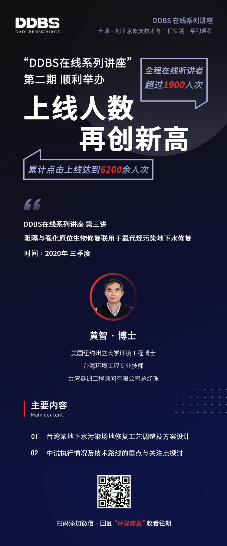 6月30日上午9點,由江蘇大地益源環境修復有限公司主辦的“DDBS在線系列講座——土壤、地下水修復技術與工程實踐系列課程”活動第二講如期舉辦。