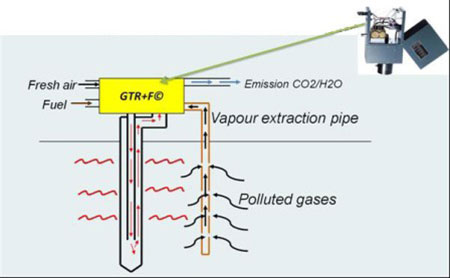 GTR(Gas Thermal Remediation)技術是一種熱脫附技術。該技術能夠治理所有類型土壤的有機污染物。例如石油烴類、多環(huán)芳烴、多氯聯(lián)苯、氯代有機物、二噁英、農藥以及一些無機污染物,如氰化物、汞等。該技術以天然氣或石油為燃料提供熱源,通過熱傳導加熱目標治理區(qū)域。同時,通過動力控制,用抽真空的方法抽取地下蒸汽。目標治理區(qū)域可以分區(qū)獨立控制,以實現(xiàn)溫度梯度和能源消耗量的最優(yōu)化。GTR技術憑借其獨特的原位治理優(yōu)勢,特別適用于污染深度深、污染濃度高、土壤粘性大的污染場地。