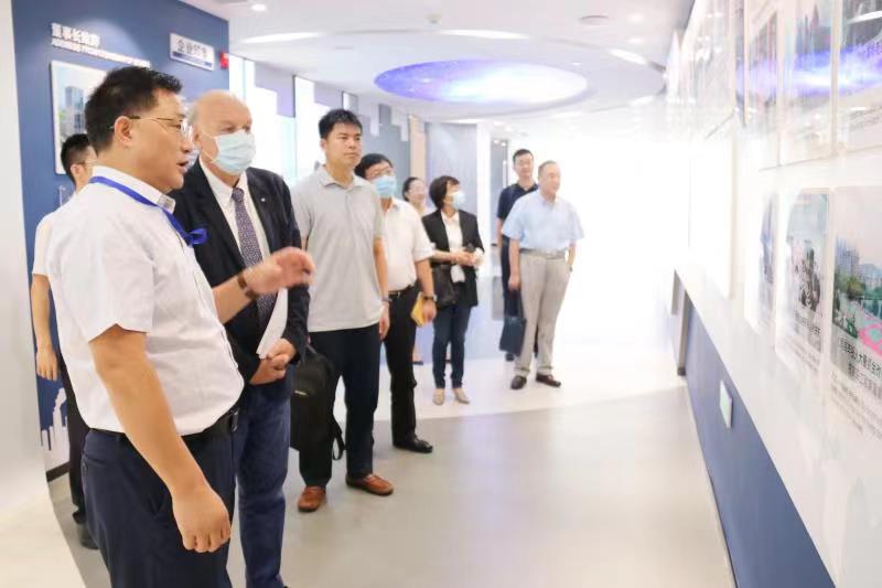 中國化學工程第三建設有限公司副總經理張家龍在展廳向威立雅客人介紹
