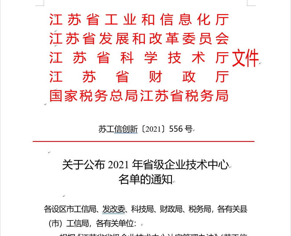 近日,江蘇省工業和信息化廳正式對外發布《關于公布2021年省級企業技術中心名單的通知》,大地益源被認定為“2021年省級企業技術中心”。