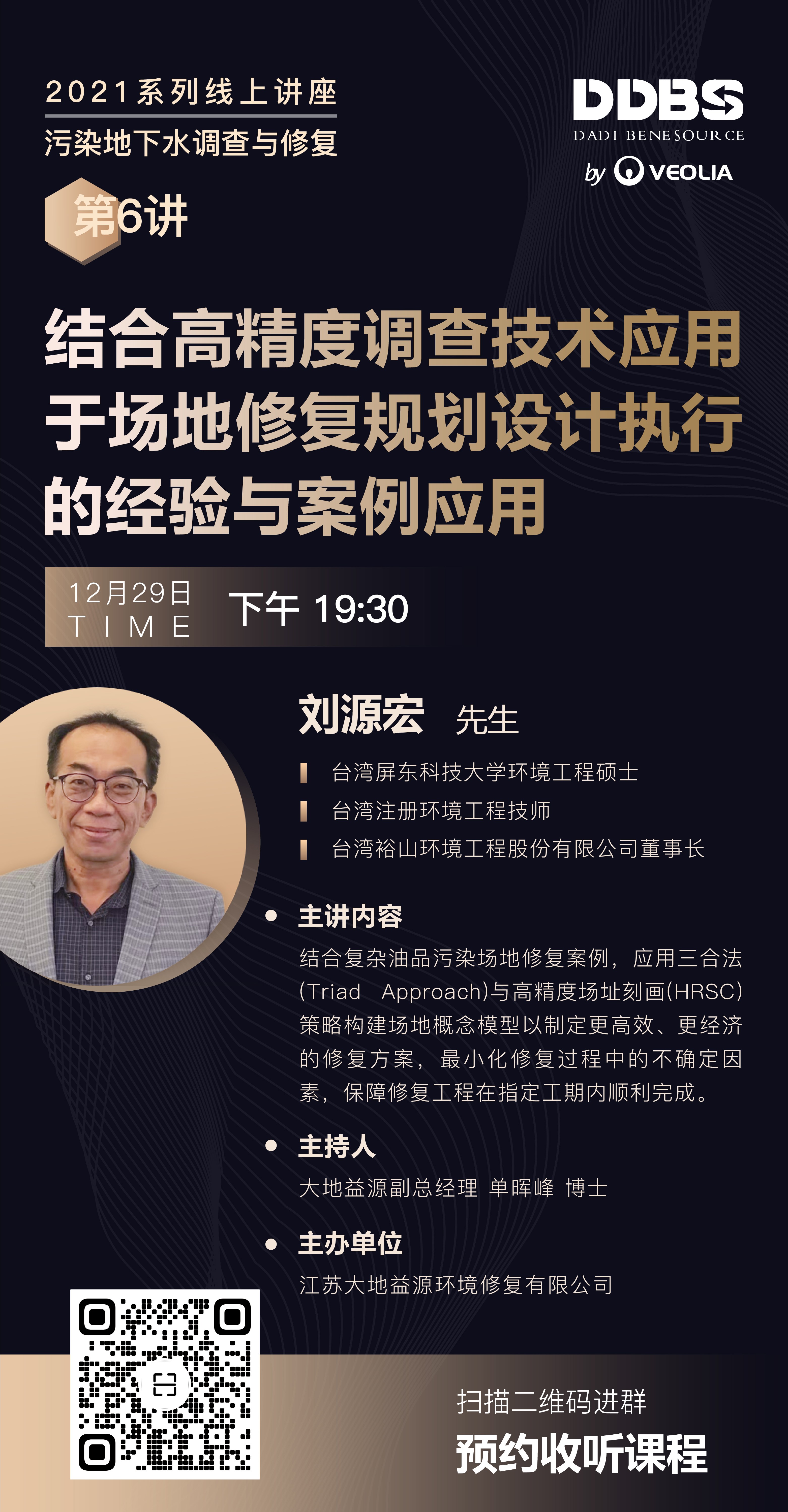 2021DDBS在線系列講座第6講計劃將于12月29日晚與大家見面。第6講嘉賓我們特別邀請到劉原宏先生,為大家帶來《結合高精度調查技術應用于場地修復規劃設計執行的經驗與案例應用》講座。
