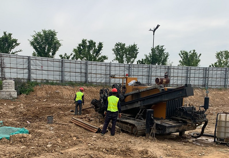 該工程位于南京市棲霞區(qū)燕子磯片區(qū),設計處理土壤9001m3、地下水13974㎡;實際處理土壤9240m3、地下水13420㎡。采用水平井注入修復工藝進行修復,工藝流程包括:污染地下水刻畫→水平修復井工藝設計→數(shù)值模擬論證→施工鉆孔定位→水平定向鉆進、擴孔→預制水平井管回拖鋪設→水平井洗井→藥劑注射→地下水監(jiān)測。