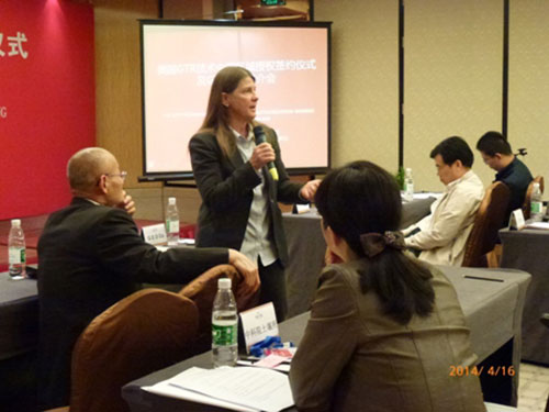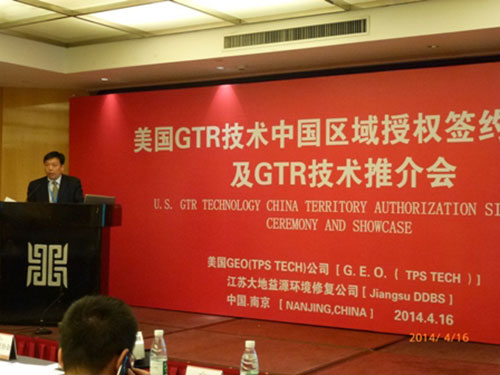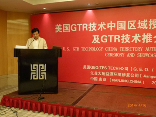 在授權簽約儀式上,美國燃氣熱脫附(TPS TECH)公司總裁Carol Winell女士和江蘇大地益源公司的總經理辜曉平先生分別作了GTR技術的介紹和推廣報告。之后,到會的專家和來賓,也紛紛致辭。其中,GTR技術中國認證機構,環保部南京環境科學研究所土壤污染防治研究中心主任、環保部創新體系土壤污染防治學科首席專家林玉瑣研究員說:GTR這種先進的熱脫附技術的先進性,表現在了大量修復工程的應用上,我非常欣賞大地益源公司在工程試驗的基礎上,果斷引進國外先進修復技術的做法!昨天專程從臺灣飛抵南京的AECOM大中華區環境修復業務總監房文傑先生說,今天有這樣一個機會,我感觸良多!據我這幾年的觀察,目前國內修復市場的成熟度和技術度,還遠不能支撐龐大的修復需求。大地益源公司在加強國際合作和國內修復市場技術引進方面,作了一個非常好的示范!江蘇省環境保護產業協會副會長兼秘書長周遷強調說:作為省環保協會污染場地修復專委會的創始成員單位,江蘇大地益源環境修復公司又在與國際接軌方面邁出了新的一步。他們引進美國燃氣熱脫附公司的GTR技術,不僅填補了我國土壤修復技術的空白,而且在商業模式和工程合作方面也是國內土壤修復領域的一個創舉!