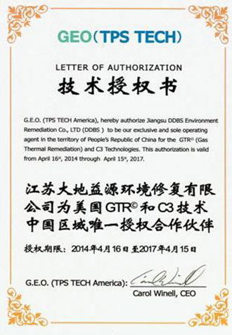 江蘇大地益源環境修復有限公司,于去年9月采用GTR技術中標了蘇州某污染場地修復中試工程項目。在燃氣熱脫附(TPS TECH)公司專家的培訓指導下,中試工程順利完成,竣工驗收合格,GTR技術的先進性和徹底的處置效果完整展現出來。這也是GTR技術在國內的首次應用。獲得GTR技術正式授權后,江蘇大地益源公司將進一步加強與美國燃氣熱脫附(TPS TECH)等專業公司的合作,積極應用GTR技術和其他先進技術,解決國內典型工業有機污染場地存在的治理難點,為提升中國修復污染土壤的技術水平作出應有貢獻。