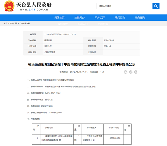 大地益源再傳捷報,連續中標兩固廢填埋場治理項目,加速布局垃圾處理新篇章