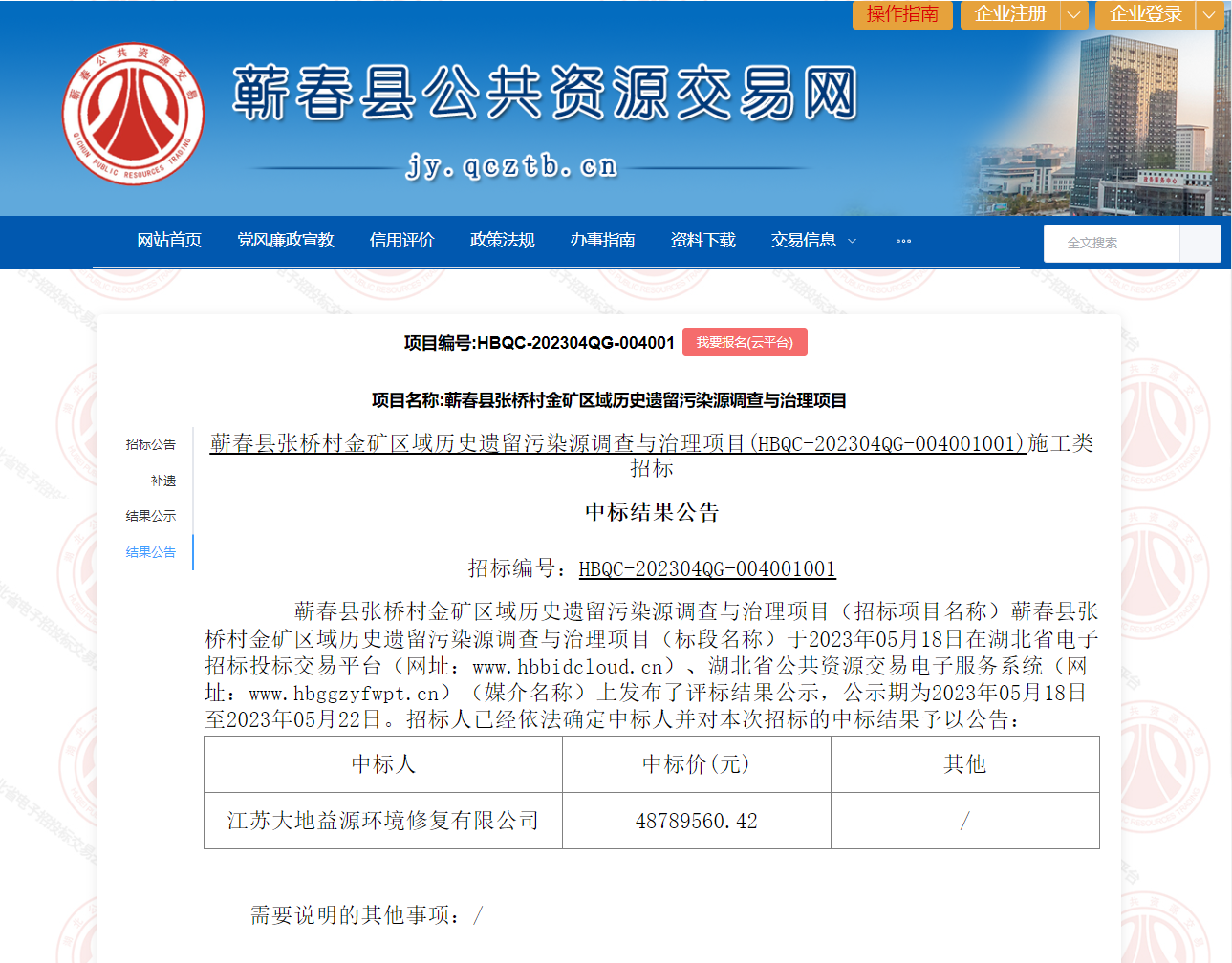 近日,蘄春縣公共資源交易中心發布公示,大地益源成功中標蘄春縣張橋村金礦區域歷史遺留污染源調查與治理項目。項目涉及金礦集中加工區風險管控及耕地功能恢復、金礦主礦區尾礦砂堆場治理、河道治理、水庫尾礦砂清理...