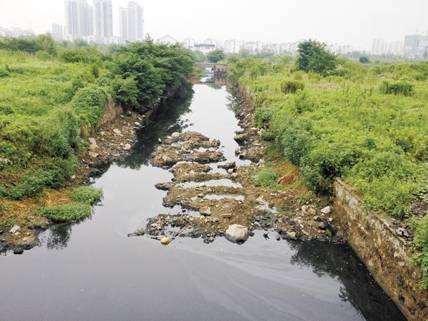 記者在穿廠而出的河道邊看到,河水污濁,且氣味嗆鼻。在此清淤的一位工人介紹說:“下雨天廠里土壤中的東西會滲到河里。我們不敢在河邊,站一段時間會很頭暈。這里清淤時要穿防護服,否則皮膚受不了。”